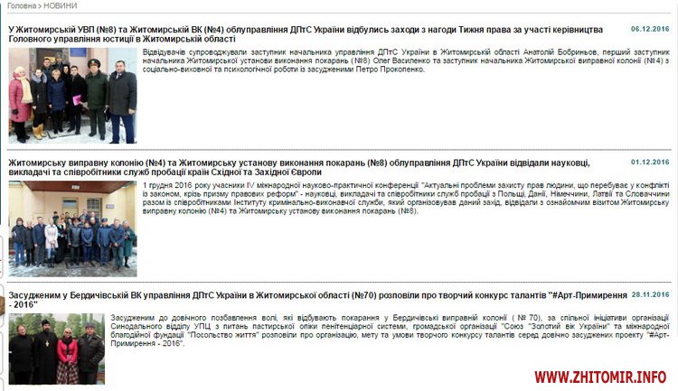 Як повідомляв Житомир.info, навесні 2016 року Кабмін України ліквідував управління Державної пенітенціарної служби в Житомирській області, щоправда, сайт управління працював і до грудня 2016 стабільно наповнювався новинами:
