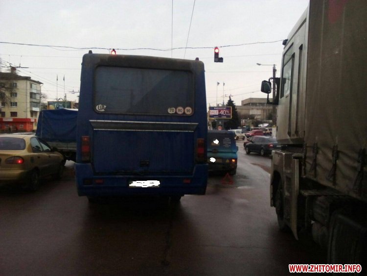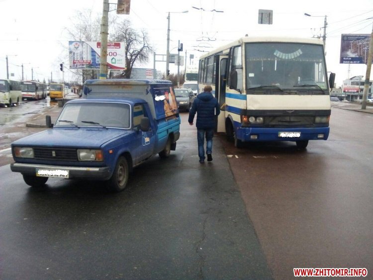 У Житомирі 24 лютого на Київському мосту сталася дорожньо-транспортна пригода за участю маршрутки та автомобіля ВАЗ.