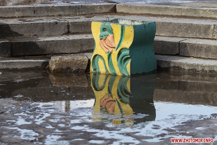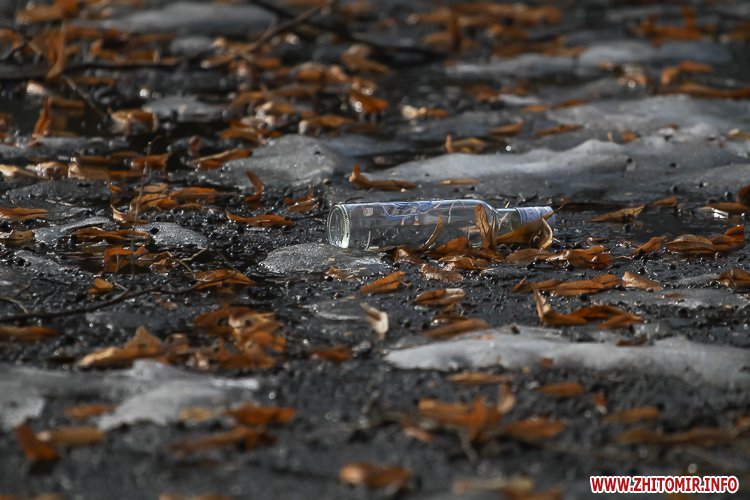 Тим часом сніг потрохи щезає з доріг і тротуарів. Натомість проявляється те, що ненавмисно приховували білі кучугури. Зокрема з клумб на майдані Корольова вітер скидає конфетті, що лишилися після новорічно-різдвяних гулянь.