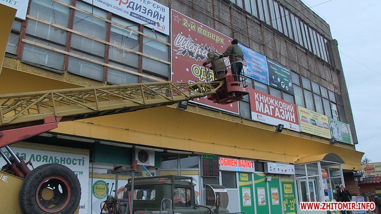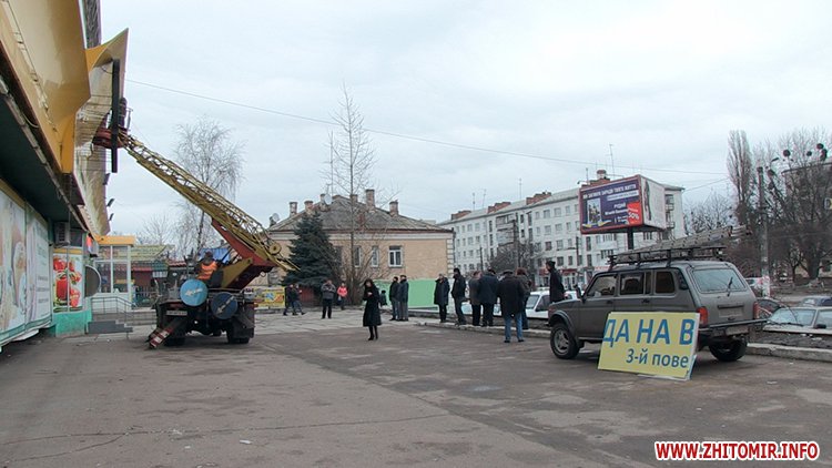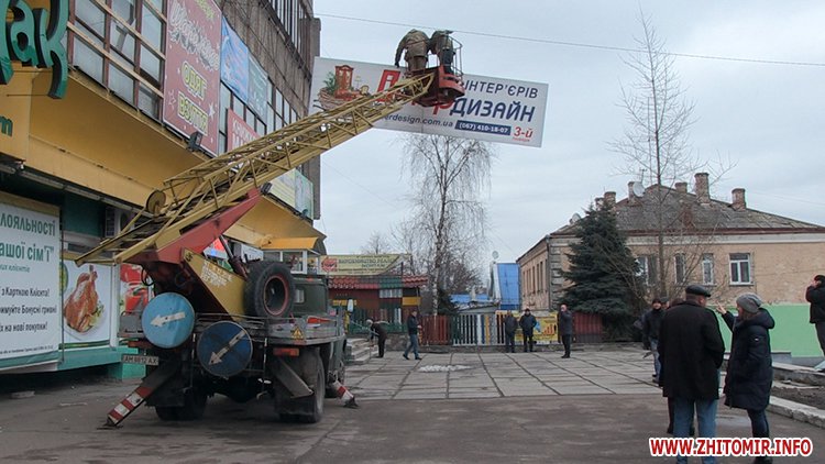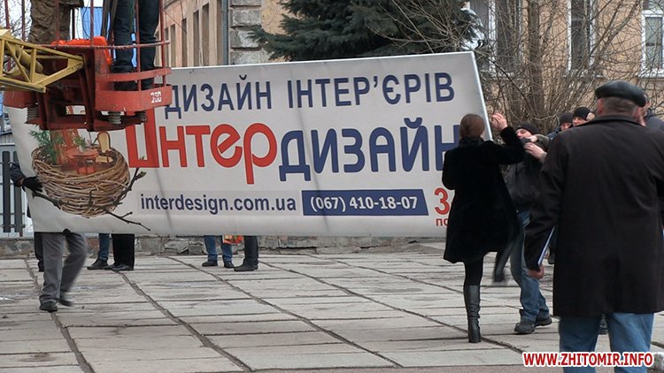 «З метою впорядкування реклами і враховуючи, що не було належно оформлено розміщення цієї реклами, виконавчим комітетом міської ради прийнято рішення про демонтаж зазначених конструкцій – об’єктів зовнішньої реклами. Враховуючи, що власниками не було вжито заходів, щоб добровільно це все зняти і залишити в себе до вирішення моменту його розміщення, сьогодні заплановано роботу вишки і працює бригада по демонтажу рекламних конструкцій. Згідно процедури, ці конструкції залишаються, ми складаємо акт про те, що ми їх демонтували і пізніше власники вирішують питання повернення», – розповідає начальник відділу КП «Інспекція з благоустрою м. Житомира» Олександр Сосновський.