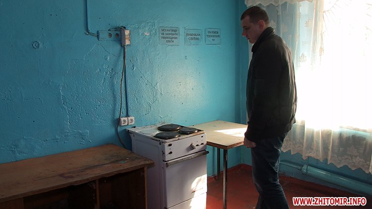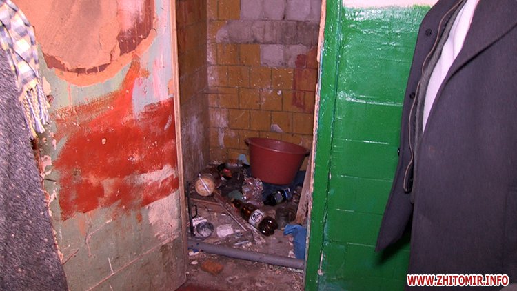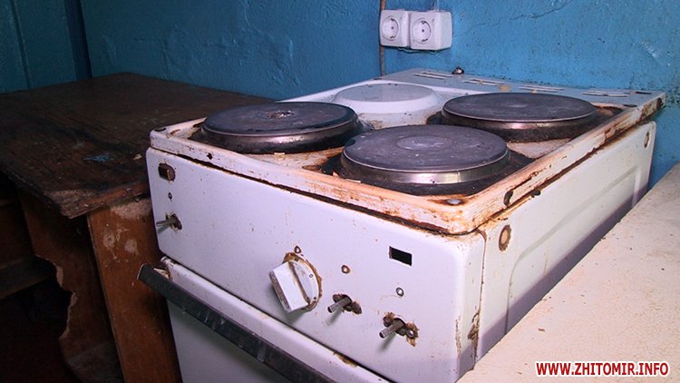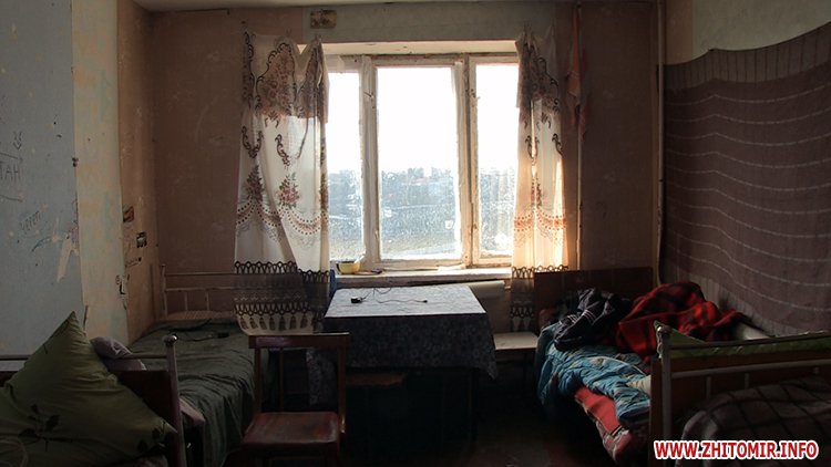 Ця дев’ятиповерхівка – гуртожиток Житомирського центру професійно-технічної освіти, більш відомого як ПТУ №15. Тут проживають більше 270 студентів. І якщо ззовні будівля уваги не привертає, то зсередини картина вражає. Замість душової кімнати – смітник, на кухні – розхитані старі меблі, ба навіть електроплита і та з однією працюючою конфоркою.