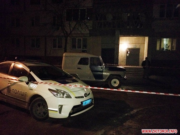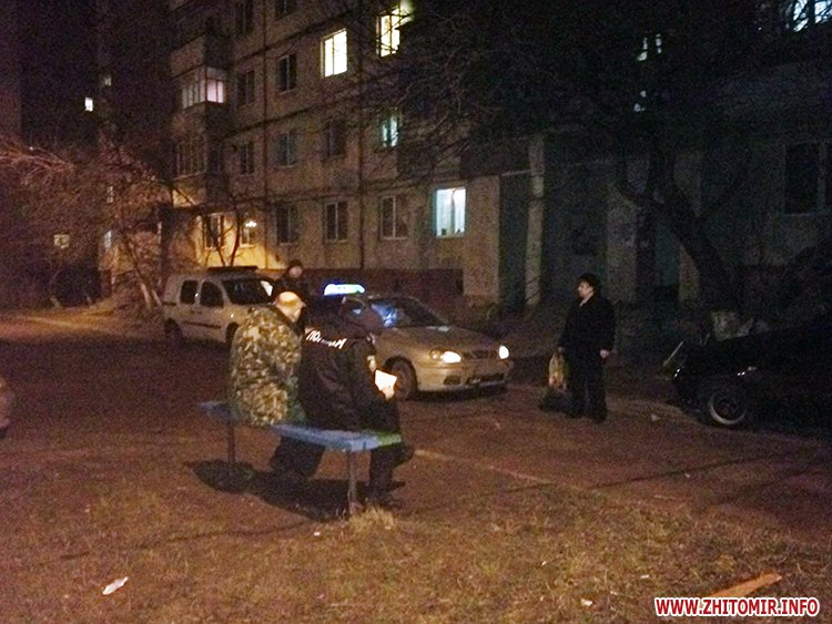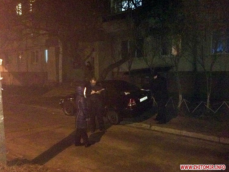 «Близько 20:30 отримали виклик, що по проспекту Незалежності, 39 дівчині нанесли тілесні ушкодження. На місце події два екіпажі патрульної прибули разом із нацгвардійцями. Там виявили чоловіка, якого відразу ж обмежили в русі та затримали. По факту – обгородили територію, патрульні забезпечили охорону місця події. За попередніми даними, водій 1989 року народження, житомирянин, який проживає в будинку за вказаною адресою, паркував у дворі свій автомобіль Geely. Неподалік стояли дві особи – чоловік і жінка, яким не сподобалася його манера паркування. Між ними виникла суперечка з цього приводу. Водій, попередньо, дістав предмет схожий на зброю, тобто пістолет для відстрілу гумових куль, і здійснив постріли в чоловіка. Крім того, наніс удар в обличчя жінці. Обох потерпілих госпіталізували. Як з’ясувалося, водій автівки виявився співробітником військкомату. Дозвіл на носіння та зберігання зброї особа мала», – прокоментували в прес-службі патрульної поліції міста Житомира.