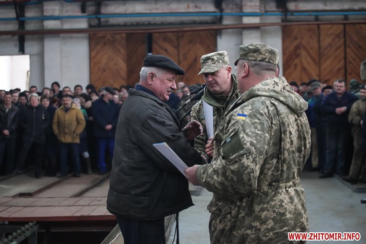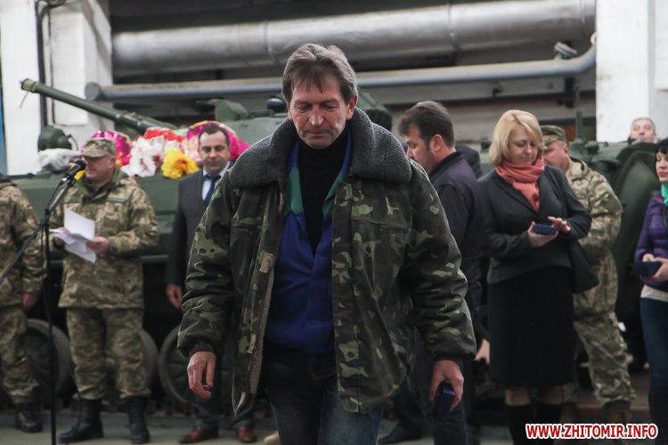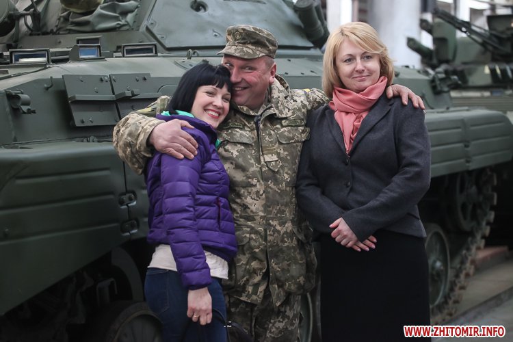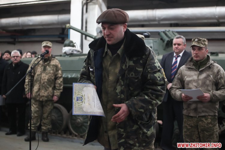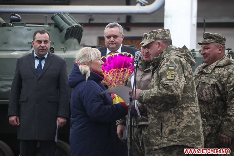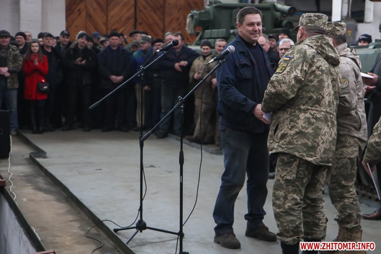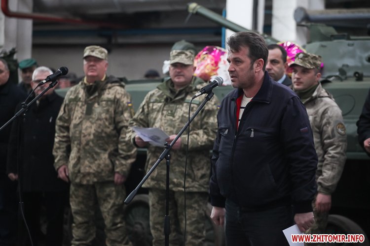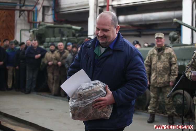 «Представники нашої військової частини хотіли подякувати особовому складу бронетанкового заводу житомирського за вагомий внесок в розбудову держави, за підтримання бронетанкової техніки нашої частини у бойовій готовності для виконання завдань за призначенням у зоні АТО», - сказав заступник командира 54-го окремого розвідувального батальйону з озброєння Олександр Гончар.