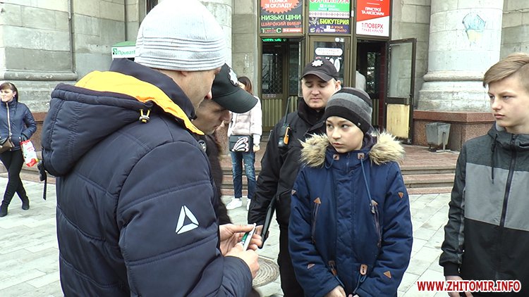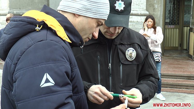 Вранці 24 березня біля будівлі Центрального універмагу у Житомирі збирається близько десятка людей – це патрульні та батьки двох житомирських семикласників, яких на перерві між уроками упіймали на тому, що вони курили електронні цигарки. Електронні пристрої в дітей одразу ж забрали вчителі, а батьки наступного дня вирішили навідатись до магазину, де підлітки придбали недитячу забавку.