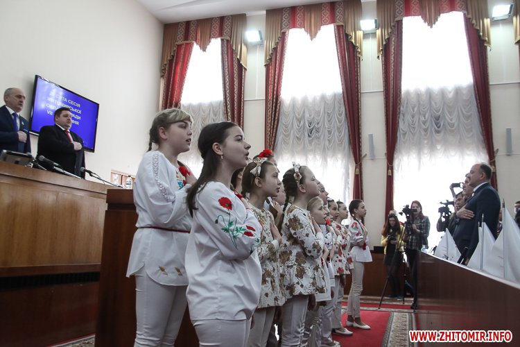 На початку народні обранці разом із дітьми виконали без музичного супроводу гімн України, а у фойє представили виставку робіт декоративно-прикладної творчості і образотворчого мистецтва Центру позашкільної освіти імені Олександра Разумкова з Бердичева.