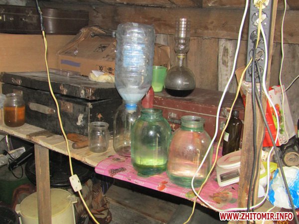 «Перевірка інформації про можливе зберігання заборонених речовин привела поліцейських до будинку жителя райцентру Житомирської області. Його домоволодіння знаходиться фактично на околиці і віддалене від сусідських обійсть. Попередньо правоохоронцям було відомо, що за цією адресою проживає пенсіонер. Його 35-річний син лише час від часу навідується до батька, приїжджаючи з Рівненщини. На момент прибуття поліцейських у домоволодінні знаходилися літній господар, його син та ще один 39-річний товариш з Рівненської області. У результаті проведеного обшуку у підсобному приміщенні правоохоронці виявили справжню наркокухню, обладнання якої та специфічні інгредієнти красномовно свідчили про виробництво заборонених речовин. З приміщення було вилучено низку приладів, ємності з прекурсорами та готовий психотроп – амфетамін. Усе це нині направлено на експертне дослідження», - інформує поліція.