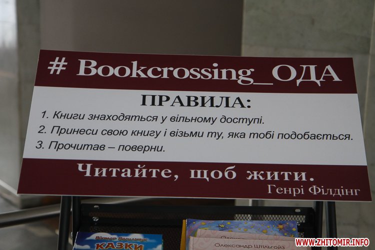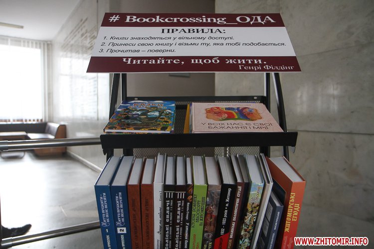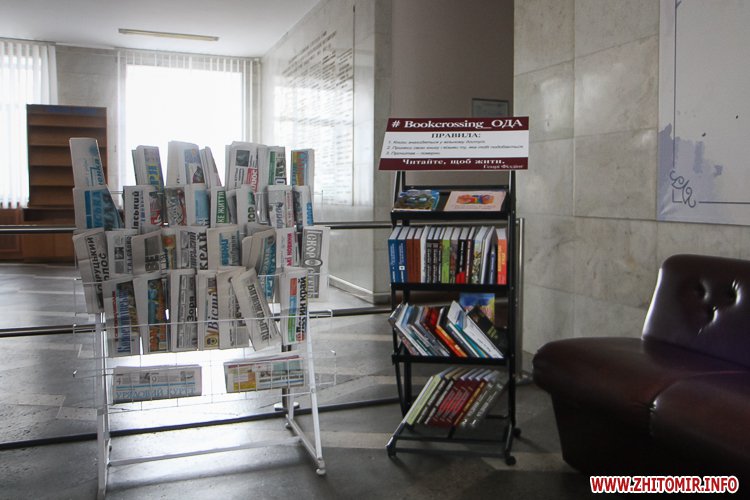 У фойє Житомирської облдержадміністрації запрацювала буккросинг-зона, облаштування якої ініціювали працівники управління інформаційної діяльності та комунікацій з громадськістю ОДА.