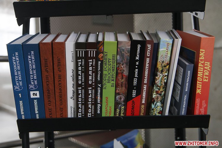 Наразі у буккросинг-зоні Житомирської ОДА – понад 50 видань. Це книги місцевих авторів, видані за програмою соціально значущої літератури, та регіональна преса (районні й обласні газети). Книги, зі слів начальника управління інформдіяльності, обиралися за популярністю – відвідувачам пропонують ті видання, що користуються найбільшим попитом у бібліотеках Житомирщини.