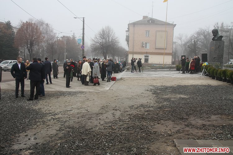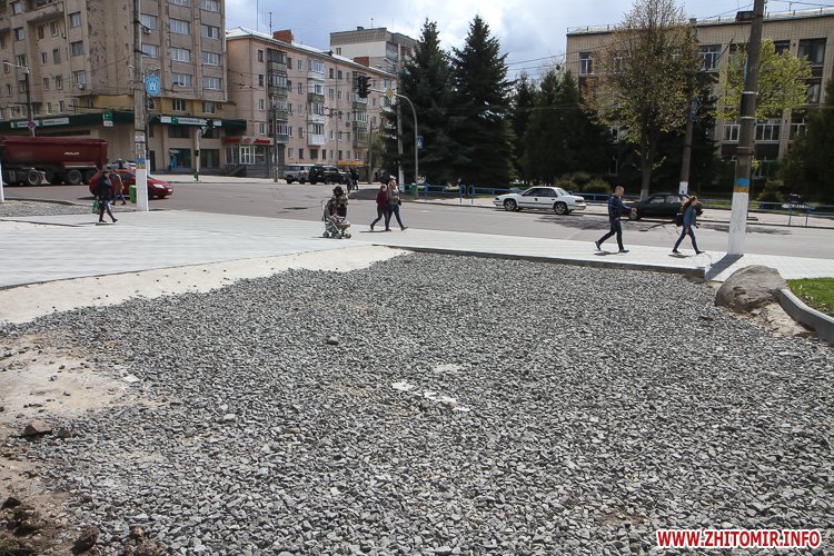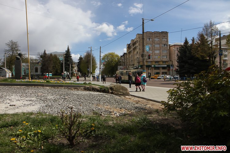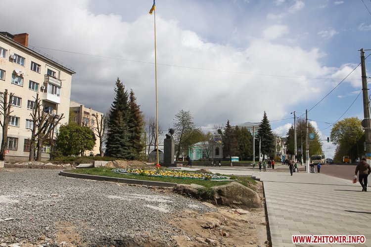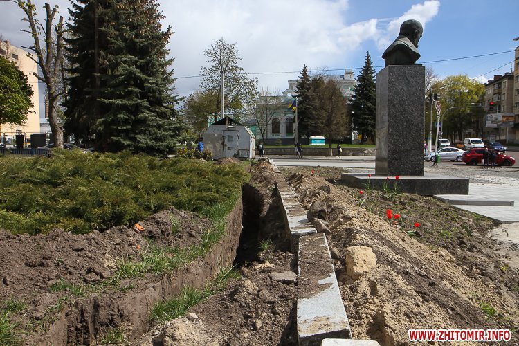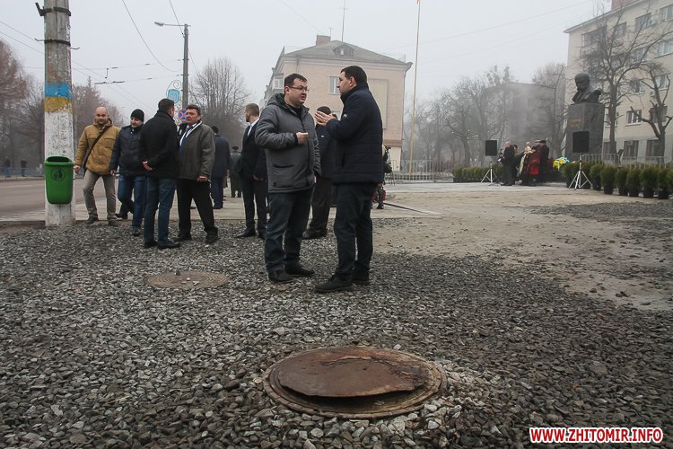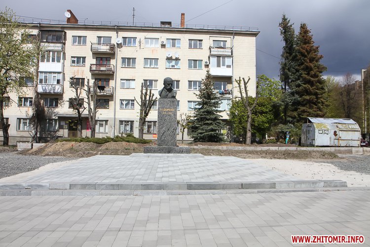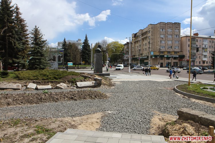 Як повідомляв Житомир.info, у жовтні 2016 року розпочалася реконструкція скверу біля пам’ятника Тарасу Шевченку у Житомирі, яку планували завершити до 31 грудня. Наприкінці листопада робітники прожували замінювати зірване асфальтне покриття на тротуарну плитку. На початку березня 2017 року на сайті Житомирської мерії повідомили про доручення міського голови Сергія Сухомлина – завершити ремонт скверу до 9 березня. Проте під час брифінгу 7 березня мер Житомира пояснив, що до вказаної дати там викладуть близько 100 м2 «тимчасової» плитки, яку згодом замінять, а загалом усі ремонті роботи будуть закінчені протягом місяця.