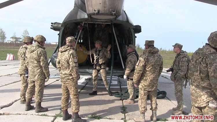 На полігоні поблизу Житомира командири рот та батарей військових частин ВДВ Збройних сил України відпрацьовували десантування з вертольоту Мі-8 безпарашутним способом. Навчання відбувались в рамках військових зборів офіцерів високомобільних десантних військ. Спочатку, за допомогою інструкторів вони пройшли спеціалізовану підготовку, а потім виконували вправу з п’яти та двадцяти метрової висоти. Наступним етапом навчання стало здійснення евакуації за допомогою сучасного спеціального обладнання.