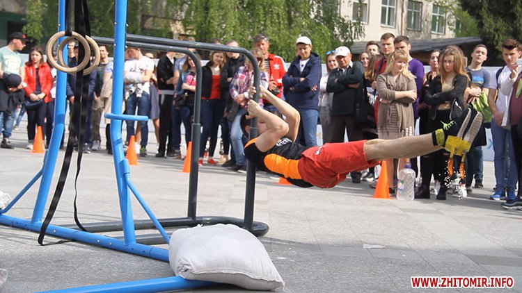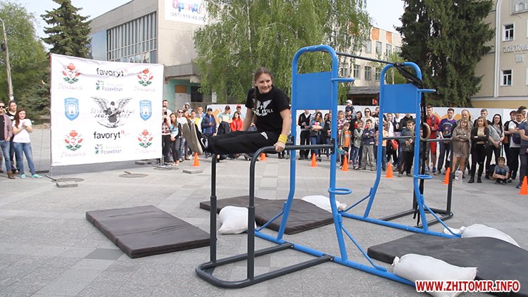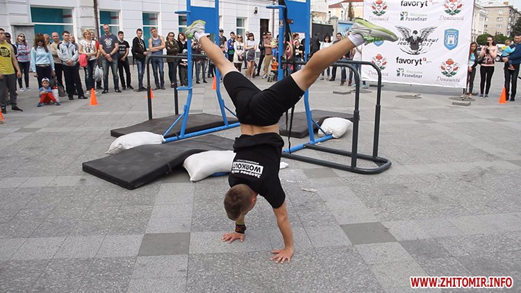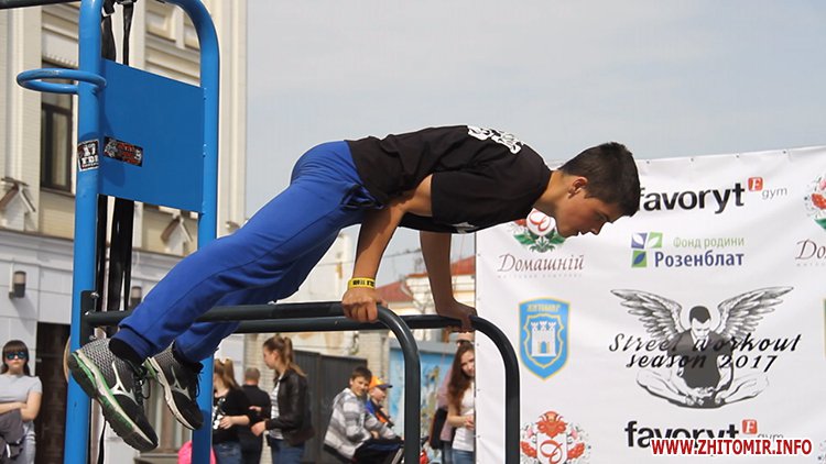 «27 учасників будуть змагатися у чотирьох номінаціях: силовий фрістайл, жіночий та чоловічий фрістайл і кроссбар. Ми завжди говоримо, що потрібно розвиватися не лише фізично, але і ментально. Тобто, качати і м’язи, і розум», – каже лідер руху Street workout у Житомирі Вадим Заблоцький.