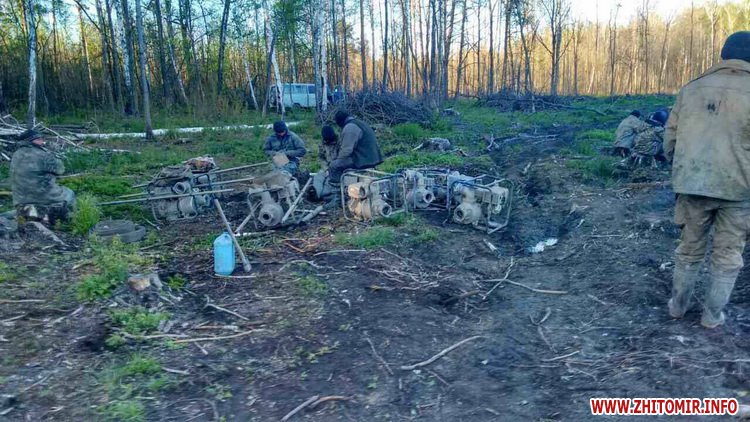 «Автомобіль «УАЗ» поліцейські зупинили близько 17.00 у лісовому масиві поблизу с. Хмелівки. Під час огляду в авто було виявлено дві мотопомпи та супутнє приладдя: пожежні рукави, стержні, забірник і т.п. За кермом автівки перебував 28-річний молодик з Рівенщини, якого разом із транспортним засобом було доставлено до Олевського відділення для з’ясування усіх обставин. Менше ніж за годину поблизу с. Хмелівки поліцейські зупинили ще один автомобіль, цього разу ВАЗ. Його водій, 26-річний житель Новоград-Волинського району, також транспортував мотопомпу та пристосування для видобутку бурштину. Відтак замість копальні чоловік поїхав до відділення поліції. Уже близько півночі рейдувальники зафіксували ще кілька фактів видобутку сонячного каменю. У лісовому масиві, поблизу с. Андріївки, поліцейські затримали двох чоловіків, які уже налагодили процес видобутку за допомогою мотопомп та розмивання грунту. У них також вилучили обладнання та кілограм бурштину. Один з них з Рівенщини, інший – житель м. Малина. Під час подальших заходів поліцейські у цьому ж масиві виявили ще 6 мотопомп, сотні метрів пожежних рукавів та супутні пристосування, поспіхом залишені напризволяще копальниками після появи правоохоронців. Відтак на місцях подій поліцейські зафіксували усі обставини та вилучили знаряддя: 11 мотопомп, 2 автомобілі, більше двох сотень метрів пожежних рукавів, водозабірники, штирі та інше», – уточнюють у поліції обставини подій.
