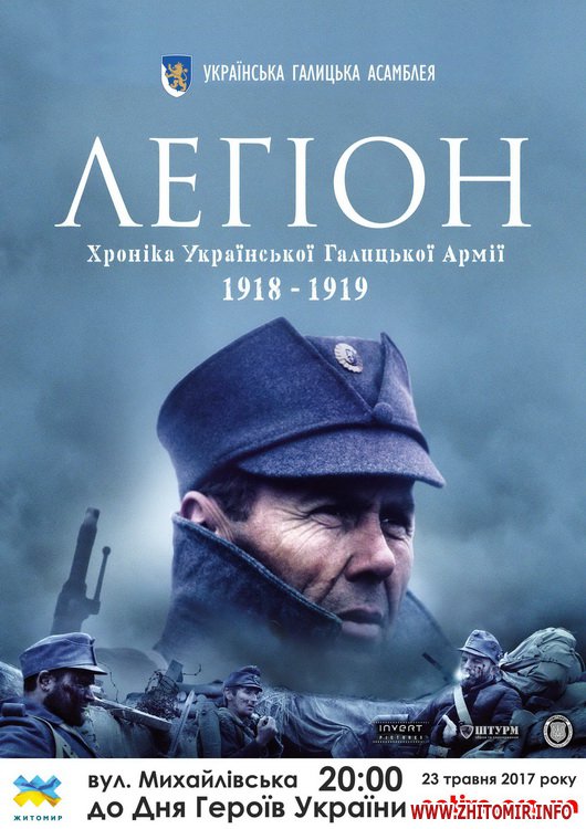 На вулиці Михайлівській житомирян чекає виступ житомирських авторів патріотичної пісні та поетів. О 20.00 відбудеться відкритий показ документального фільму «Легіон».