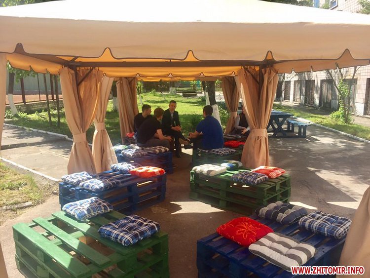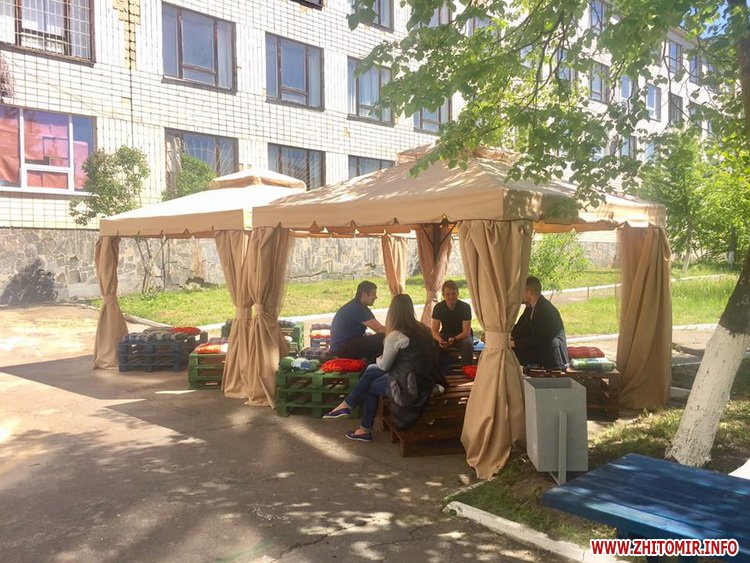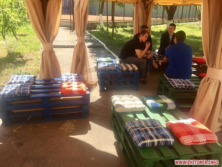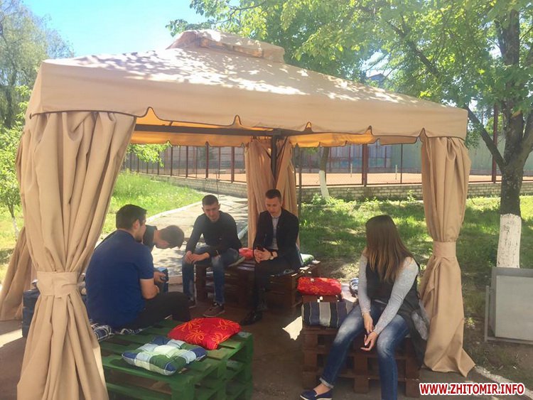 У внутрішньому дворику Житомирського державного технологічного університету 19 травня відкрили лаунжд-зону, де студенти за філіжанкою кави зможуть відпочивати на перервах.