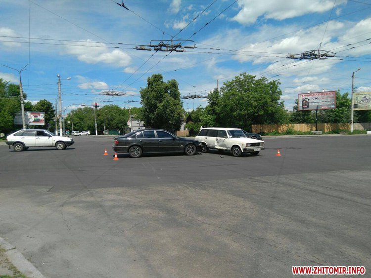 В обідню пору 29 травня на перехресті вулиці Покровська (до перейменування Щорса) та проспекту Незалежності (колишня вул. Ватутіна) в Житомирі трапилося зіткнення двох легковиків.