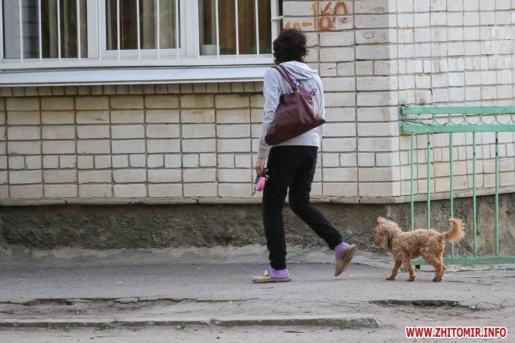 Також люди вигулюють собак вздовж проїжджої частини у Житомирі.