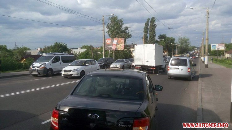 2 червня близько 17 години в Житомирі, за залізничним мостом на Київському шосе, сталася аварія, через яку на дорозі утворилася пробка.