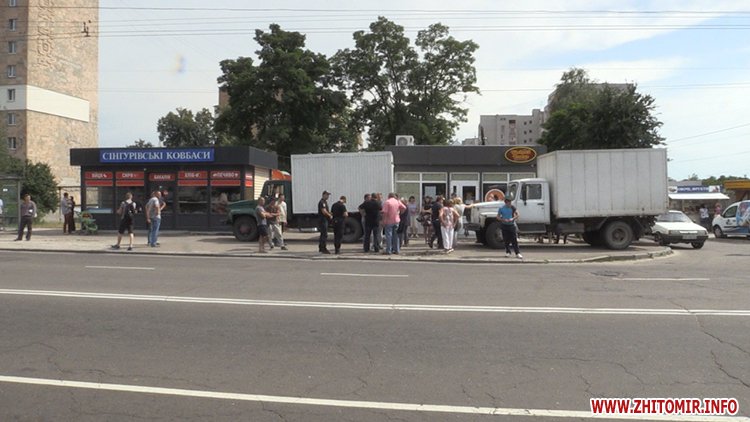 Розмови навколо МАФу на Чуднівській у Житомирі не вщухають. Виконком прийняв рішення – демонтувати кіоск, що власне 11 липня і приїхали зробити працівники місцевої інспекції з благоустрою. Однак тут на них чекав сюрприз. Власники кіоску загородили його вантажівками, позаяк певні: МАФ стоїть законно, а от рішення виконкому – доволі сумнівне.
