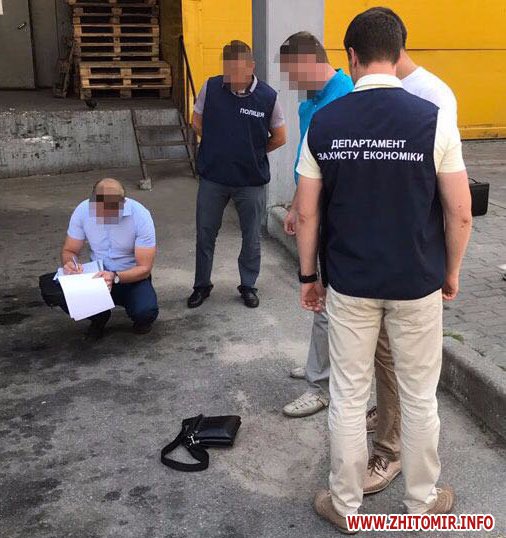 Біля супермаркету «Еко», що на розі вулиць Леха Качинського та Малої Бердичівської в Житомирі, вдень 19 липня працівники Нацполіції, СБУ та прокуратури на хабарі в 3,5 тис. грн затримали чиновника обласного управління екологічної інспекції.