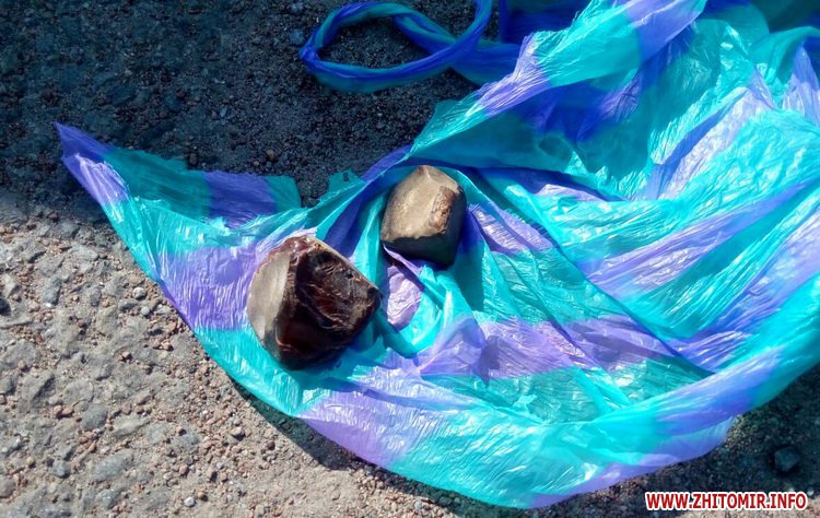 Під час огляду автомобіля було виявлено та вилучено ручну гранату, білий порошок, схожий на амфетамін, та каміння, за зовнішними ознаками подібне до бурштину.