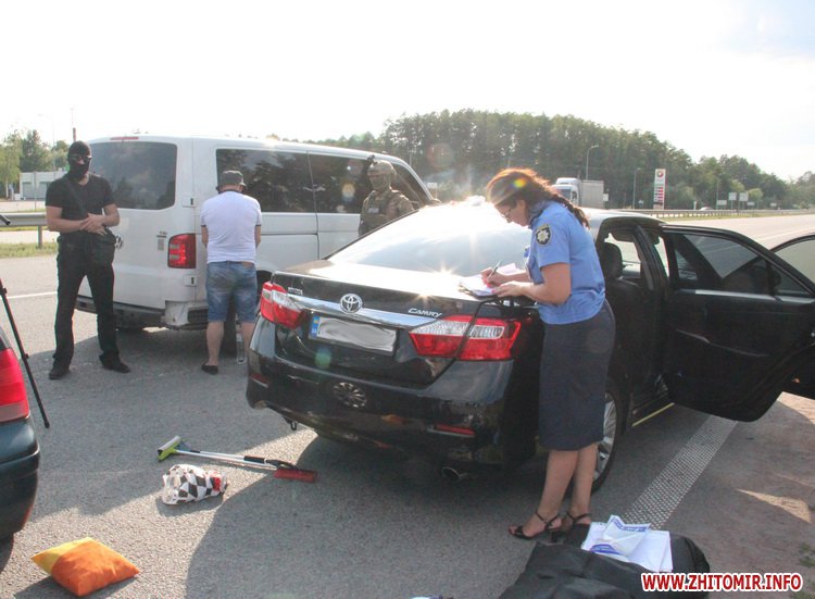 «Автомобіль «Тайота Камрі» поліцейські затримали близько 16.00 год на автодорозі Київ – Чоп у Житомирському районі. Спецоперацію провели працівники кримінальної поліції спільно з бійцями «КОРДу» Головного управління Нацполіції в області та за допомогою групи швидкого реагування Управління превентивної діяльності ГУНП. За кермом автівки перебував 54-річний житель Запоріжжя, знаний у кримінальному світі як «Зурік». Також у салоні знаходилась 19-річна киянка», - йдеться у повідомленні.