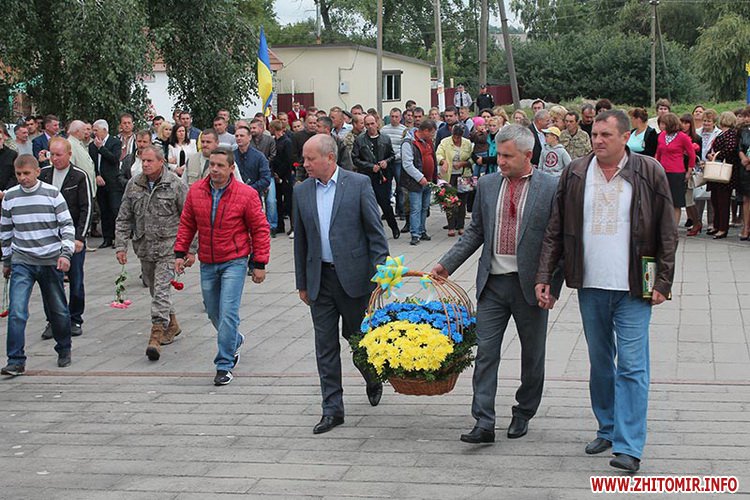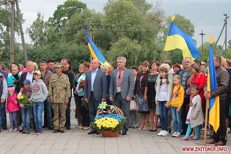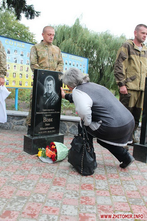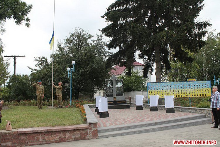 «Відкривали пам’ятні дошки учасники АТО з Любарщини, квіти до їх підніжжя першими поклали рідні й близькі Героїв. Згорьовані родичі не змогли стримати сліз та й природа наче зрозуміла горе матерів – саме в цей момент пішов короткий дощ. Пам’ятник освятив отець Василь, благочинний УПЦ Київського патріархату. На завершення родичів загиблих воїнів та інших учасників АТО з Любарщини запросили за поминальний стіл, аби згадати полеглих Героїв. Матеріальну частину витрат на організацію поминального обіду на себе теж взяв Ігор Ходак», - зазначили на сайті Любар-online.