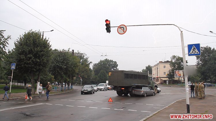 4 вересня у Житомирі, на майдані Короленка, військовий КрАЗ зіштовхнувся з легковиком ВАЗ.