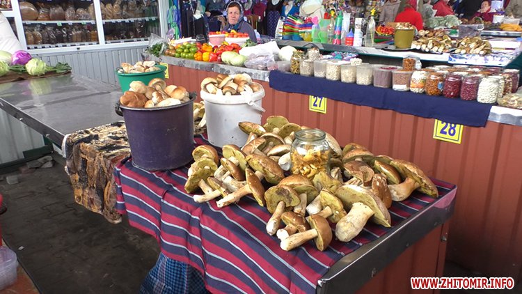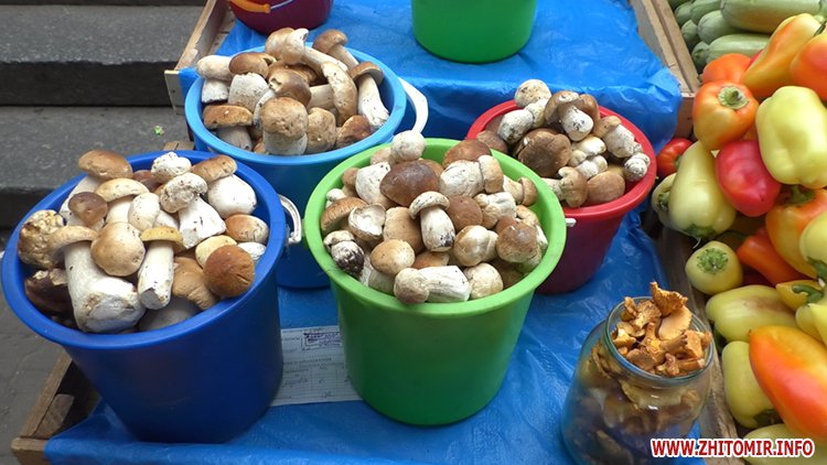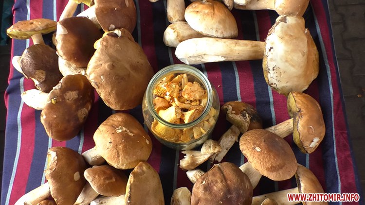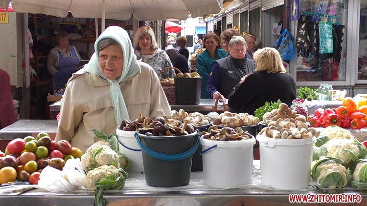 Гриби на будь-який смак і гаманець пропонують на Житньому ринку у Житомирі. Від розмаїття очі розбігаються. Пані Віра привезла свої з Левкова.