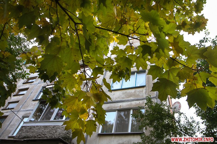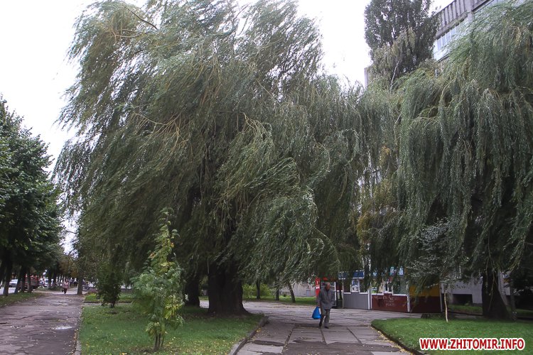 6 жовтня у Житомирі, як і прогнозували синоптики, вітряно. Вітер то стихне, то «рване», гнучи гілки дерев й піднімаючи сміття й листя на тротуарах.