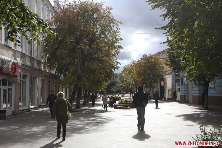 Прогнози вітру до 15-24 метрів за секунду змусили житомирян витягти з шаф тепліший одяг та шапки, однак негода виявилася не настільки страшною, як передбачалося: з-за хмар час від часу проглядає сонце.