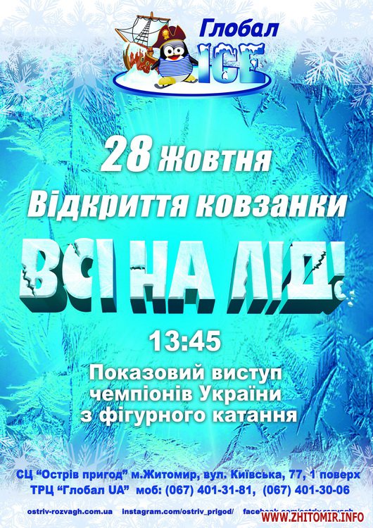 Надзвичайна подія для Житомира та Житомирської області, запрошуємо ВАС 28 жовтня о 13:45 на грандіозне відкриття ковзанки «Глобал ІСЕ» у ТРЦ «Глобал UA».