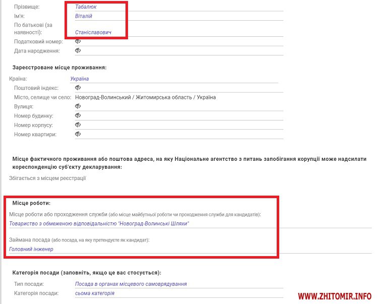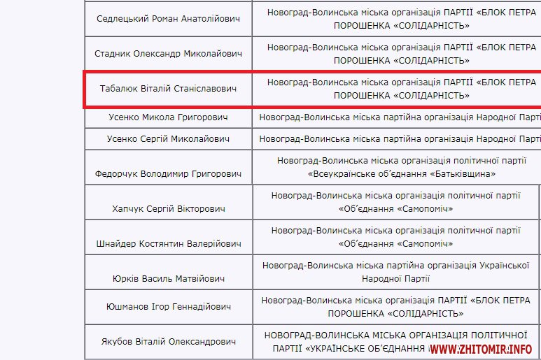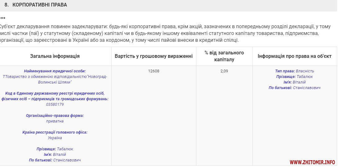 Асфальтуватимуть дороги дві підрядні організації – комунальне підприємство «Шляхрембуд» та ТОВ «Новоград-Волинські шляхи», головним інженером якого є депутат Новоград-Волинської міської ради від Блоку Петра Порошенка Віталій Табалюк. Згідно з декларацією депутата, йому належить частка у вищезгаданому підприємстві. 62,8% ТОВ «Новоград-Волинські шляхи» належить Табалюку Станіславу.