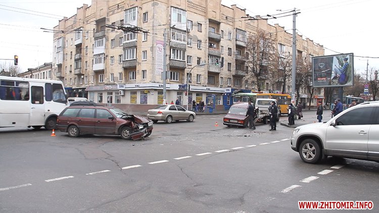 У Житомирі неподалік торговельного центру «Ярмарок», на перехресті Київська-Східна, обідньої пори 3 листопада трапилася дорожньо-транспортна пригода.