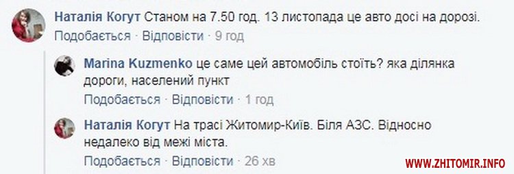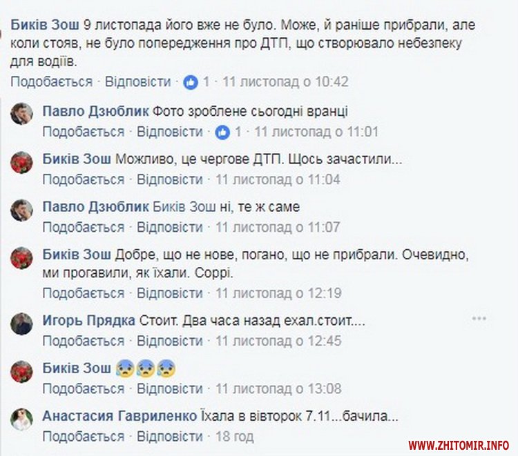 Речник патрульної поліції Житомира Ігор Іванюк сказав Житомир.info, що також переглянув інформацію про ДТП з 4 листопада, проте нічого схожого не було.