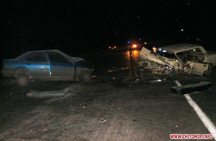 У Житомирській області на дорозі не розминулися ВАЗ та Renault, один водій загинув. Фатальна дорожньо-транспортна пригода сталась 20 листопада близько 19.10 на автодорозі Виступовичі-Житомир, поблизу с. Лісівщини.