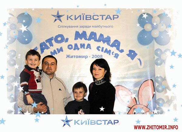 Житомиряни Олександр й Аня та їх хлопчики Ростик і Іллюшка були дуже задоволені. Вони вже виграли подарунки в конкурсах, але це не головне - вони були разом з батьками і робили спільну справу, це щастя! Бо, як сказав Олександр, він багато працює, не має можливості бувати з дітьми, спілкуватись з ними. Дізнавшись про сімейні свята від „Київстар”, полишив на деякий час всі справи і прийшов сюди разом із сім’єю. І дуже задоволений, а у дітей - немає слів.