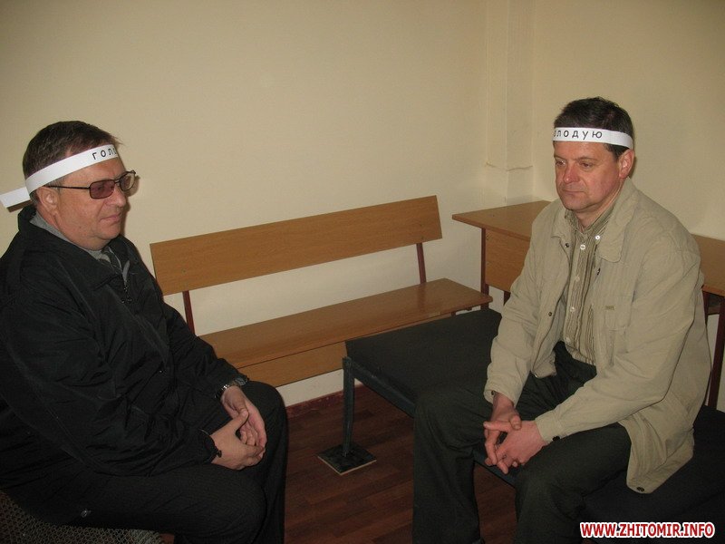 С утра к голодающим в здание института приехали представители властей и профильного министерства: начальник управления промышленности Житомирской госадминистрации Василий Сухораба и представитель Минпромполитики Владимир Сиренко.