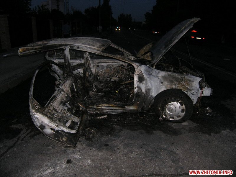 Около 2 часов ночи на улице Черняховского в Житомире автомобиль «Опель», двигаясь в направлении Майдана Соборного, совершил наезд на железобетонную опору освещения, после чего автомобиль загорелся.