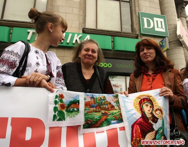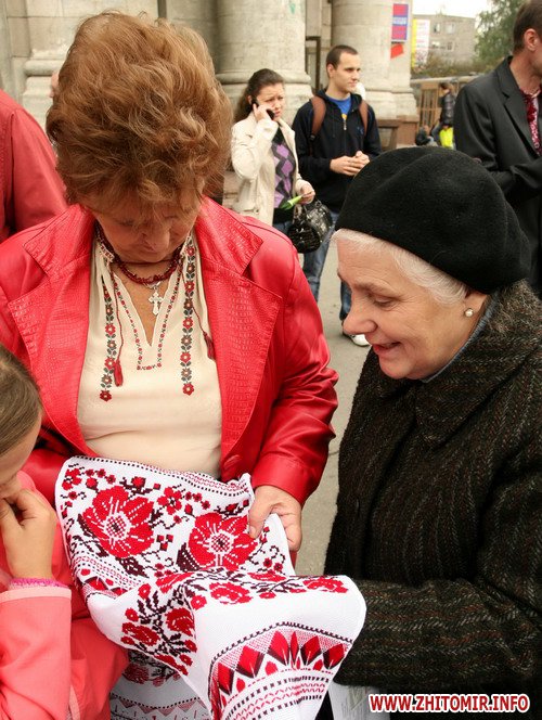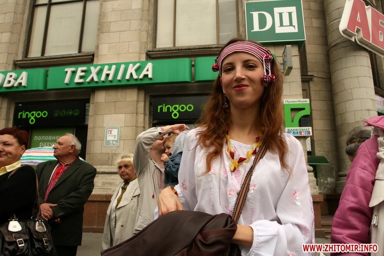 У центрі Житомира, поруч із центральним універмагом, збіралися житомиряни у вишитих сорочках - на так званий парад вишиванок. 18 вересня однодумнці зустрілися, аби вшанувати традиційний український стрій та поспілкуватися.