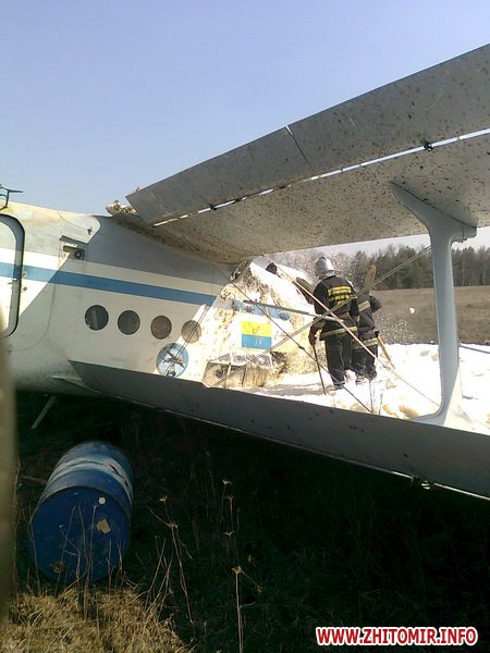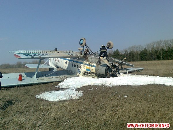 Как сообщал Житомир.info, 30 марта на поле возле села Диброва Малинского района Житомирской случилось ЧП с самолетом АН-2. При попытке совершить посадку самолет перевернулся, в результате чего возникло возгорание двигателя.