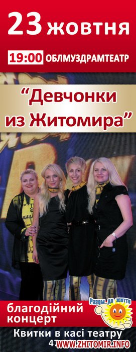 Благотворительный концерт состоится 23 октября в зале Житомирского областного академического музыкально-драматического театра им.И.Кочерги.