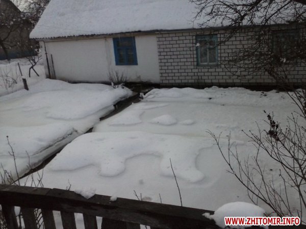 12 февраля около 14:20 хозяйка одного из частных домов обратилась за помощью в пожарно-спасательную часть города Новоград-Волынский. Женщина сообщила, что фасад и фундамент ее дома, а также пол внутри помещения подтоплены водой. Прибывшие на место происшествия спасатели и аварийно-спасательная бригада производственного управления водопроводно-канализационного хозяйства города установили, что причиной подтопления стала неисправность системы водоотведения сточных вод, а именно: негерметичность ливневой канализации и ее заиление. Рядом с домом сточные воды выходили наружу и ручьем текли в низину, где и расположен дом.