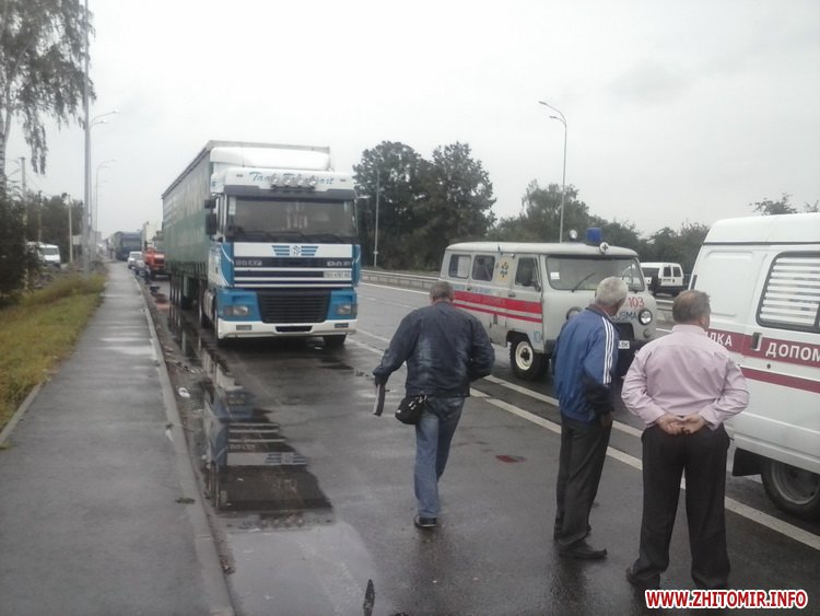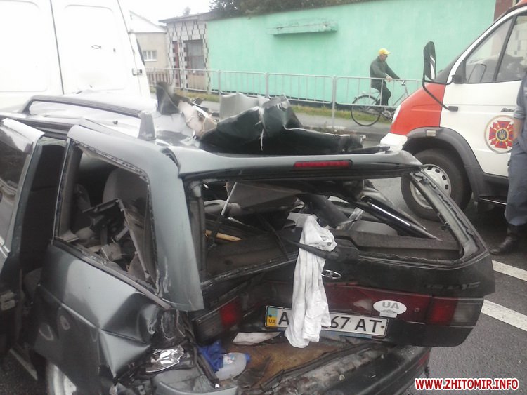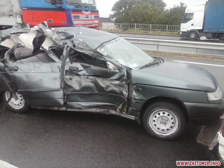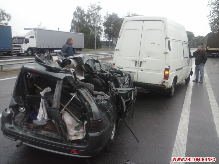29 августа около 14.50 на 210 км автодороги Киев-Чоп в Новоград-Волынском районе водитель автомобиля Форд-Транзит, 46-летний житель Житомира, въехал в автомобиль ВАЗ-21114, под управлением 54-летнего жителя г. Новоград-Волынский, который двигался в попутном направлении. После этого Лада столкнулась с припаркованным на обочине грузовиком ДАФ.