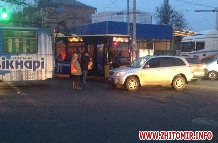 4 марта в центре Житомира легковой автомобиль Chery въехал в троллейбус. ДТП произошло около 17.45 на перекрестке улиц Театральная и Киевская.