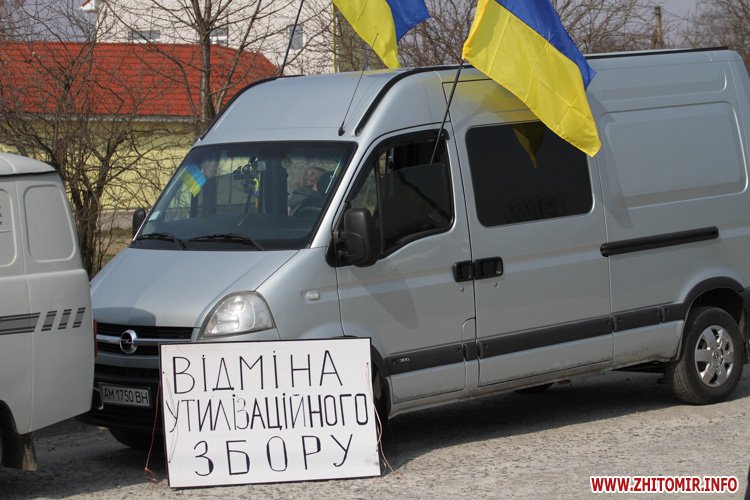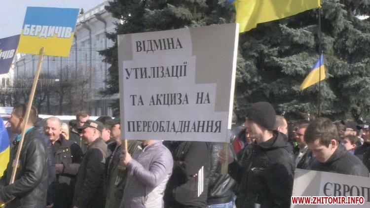25 березня близько сотні бердичівлян пікетували Житомирську облдержадміністрацію, вимагаючи відміни утилізаційного збору та акцизу на переобладнання транспортних засобів. Перед тим підприємці пікетували один із митних терміналів Житомирської митниці у селі Оліївка.