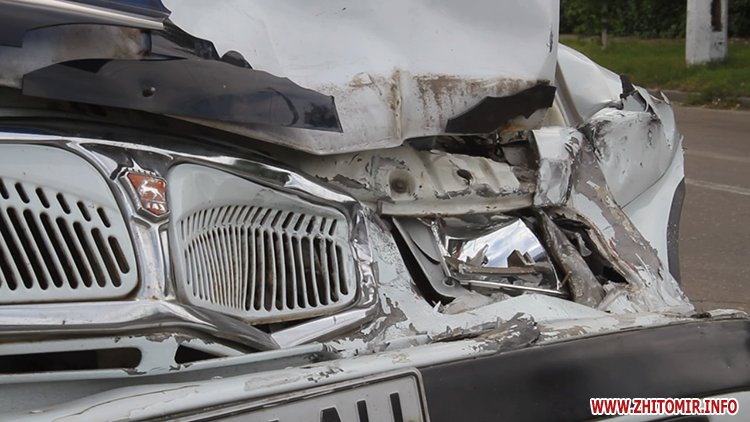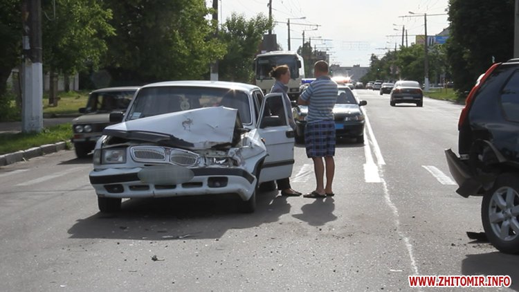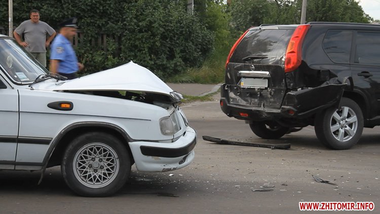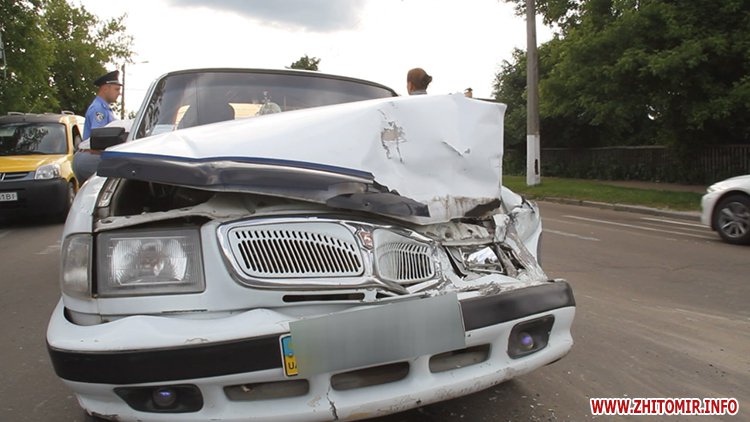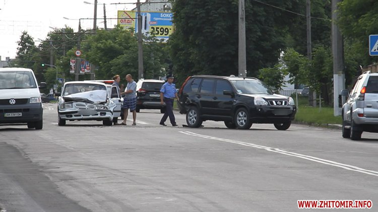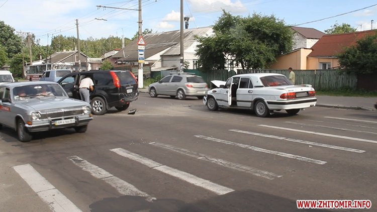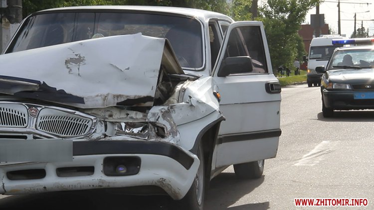 13 июня в Житомире возле Монумента Славы столкнулись два автомобиля – Волга и Nissan. Авария произошла около 17.00 на улице Черняховского.