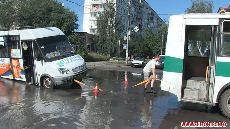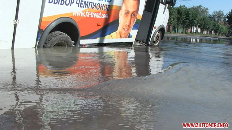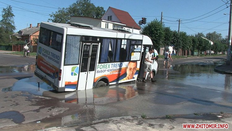 2 августа в Житомире на перекрестке улиц Шелушкова и Гоголевская маршрутка провалилась в яму.