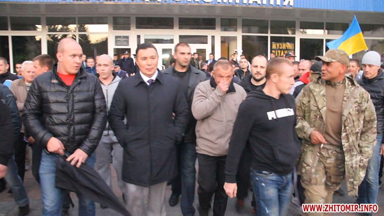 Ввечері 10 жовтня прихильники кандидата по округу №62 (Житомир) Юрія Бобра заблокували вхід до житомирського телецентру на вул.Театральна і не пускали журналістів.