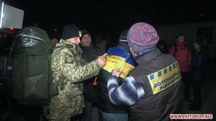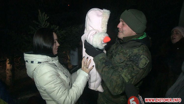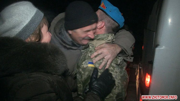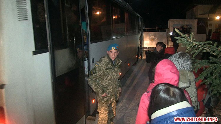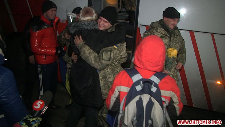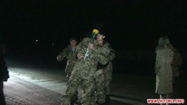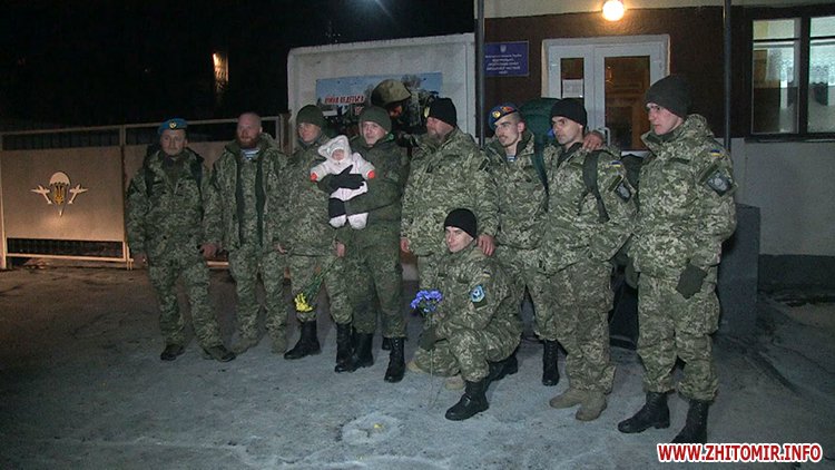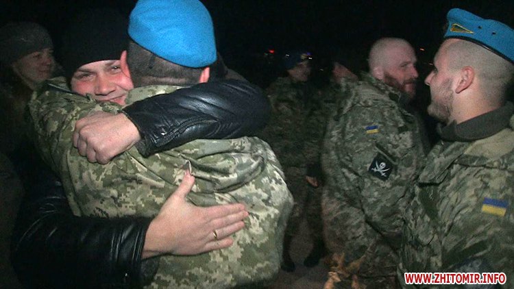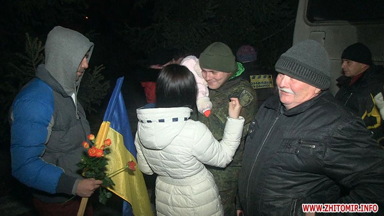 Близько 50-ти «кіборгів» 2-го батальйону 95-ї окремої аеромобільної бригади повернулися додому у відпустку. Зустрічати їх в ніч з 7 на 8 грудня до КПП на Богунії вийшли десятки житомирян.