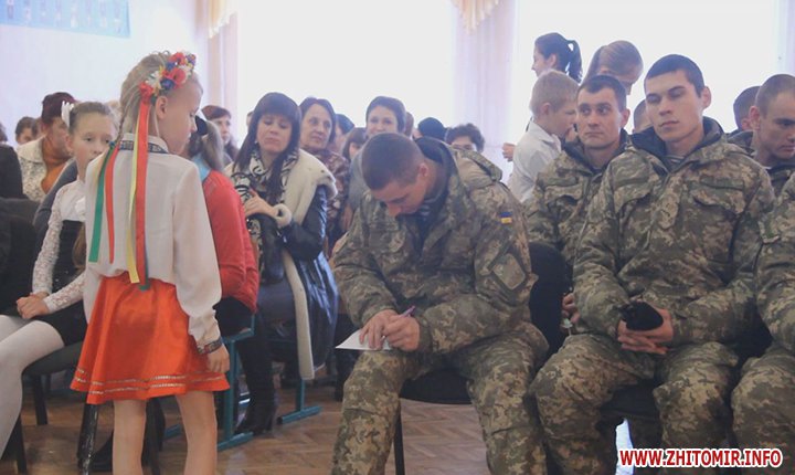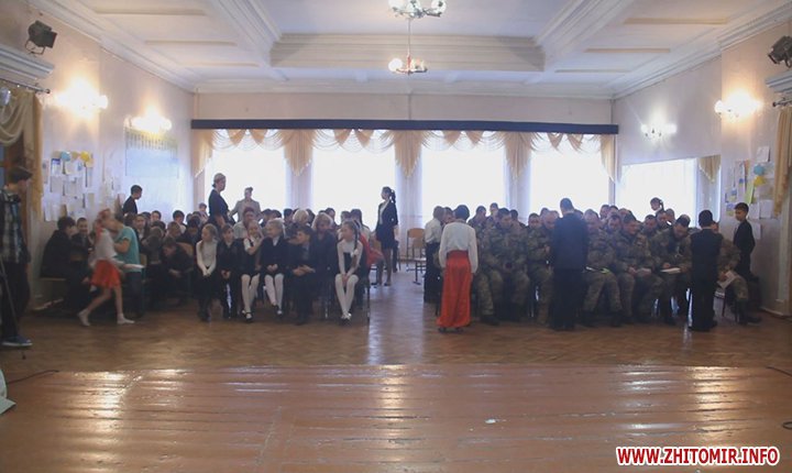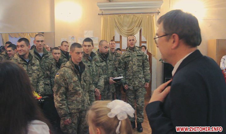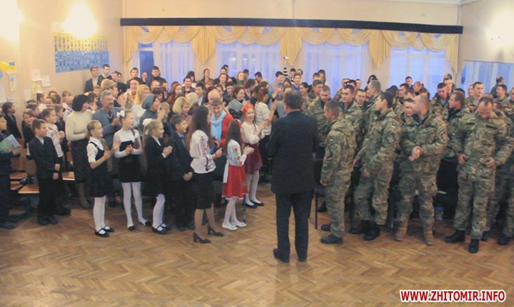18 грудня в житомирській школі №36 учні концертом віддячили героям, які захищають Україну, та влаштували справжнє полювання за автографами легендарних «кіборгів» з 95-ї окремої аеромобільної бригади.